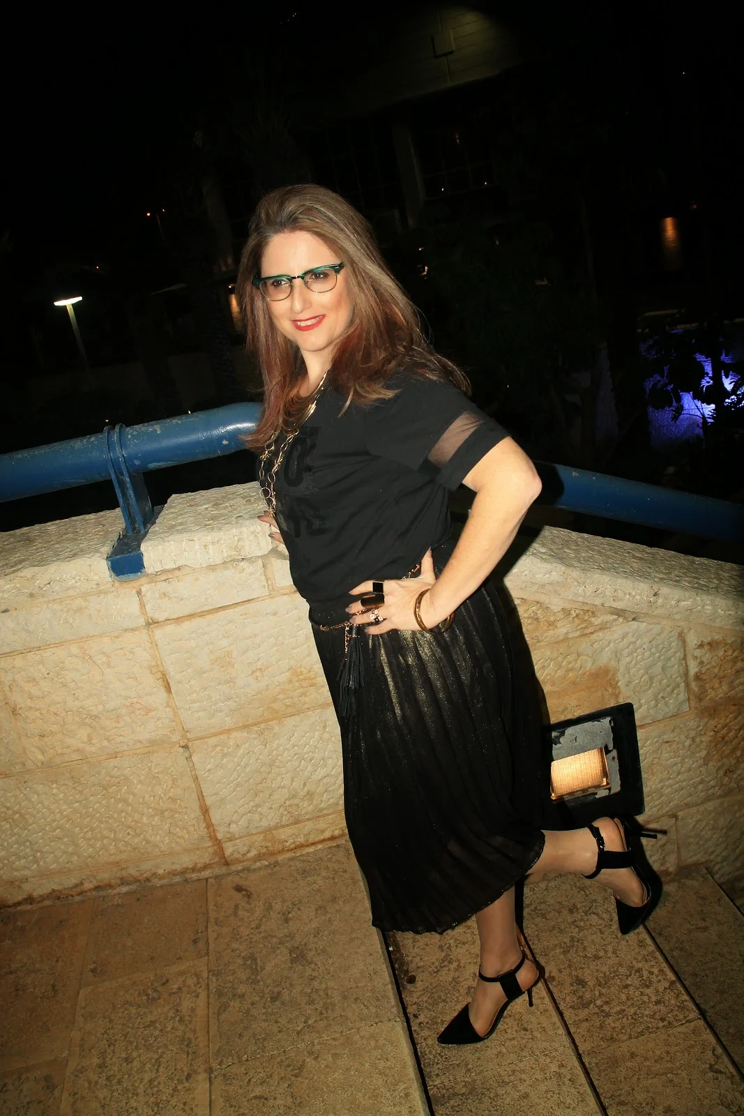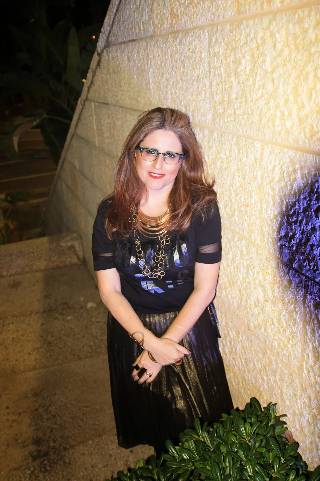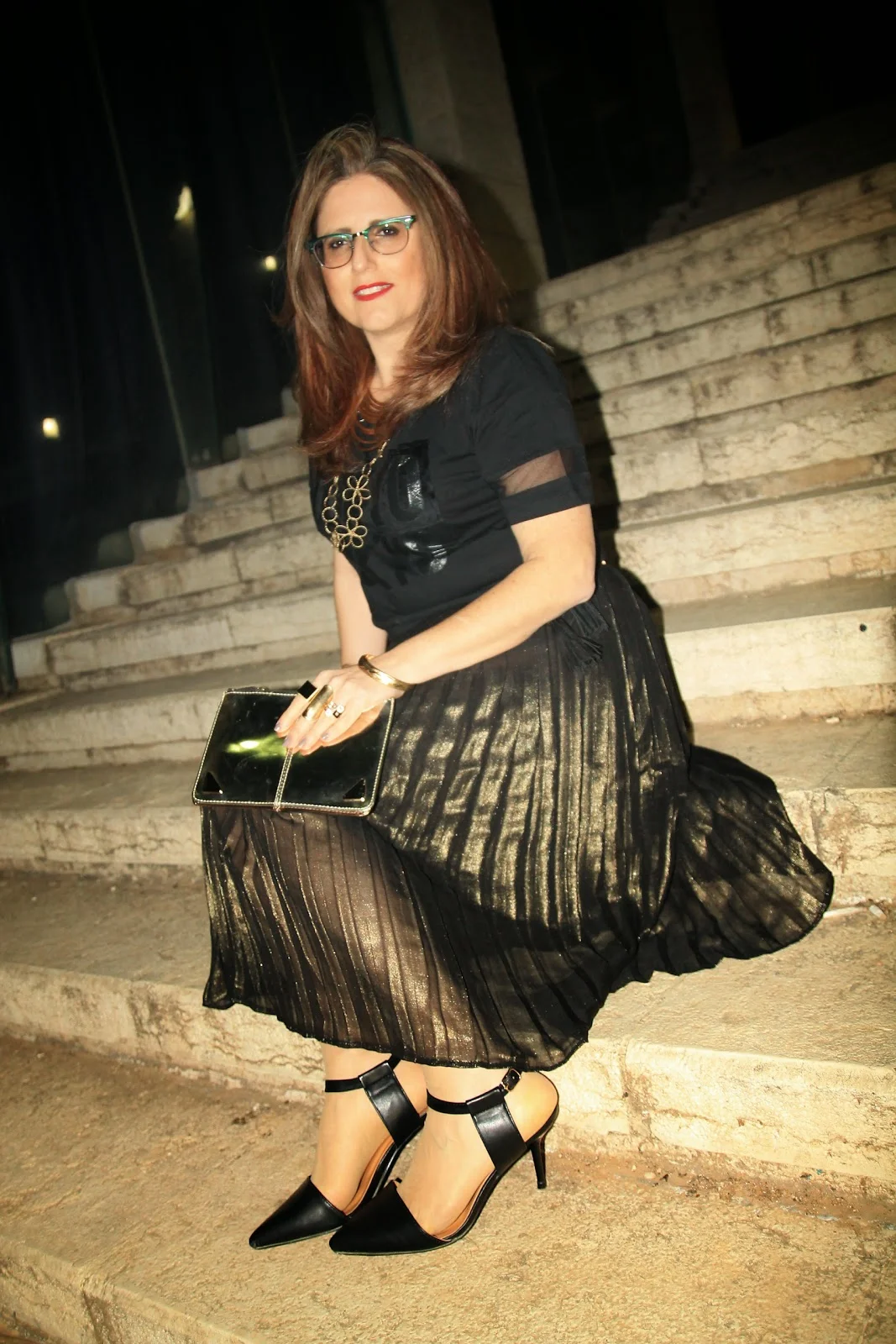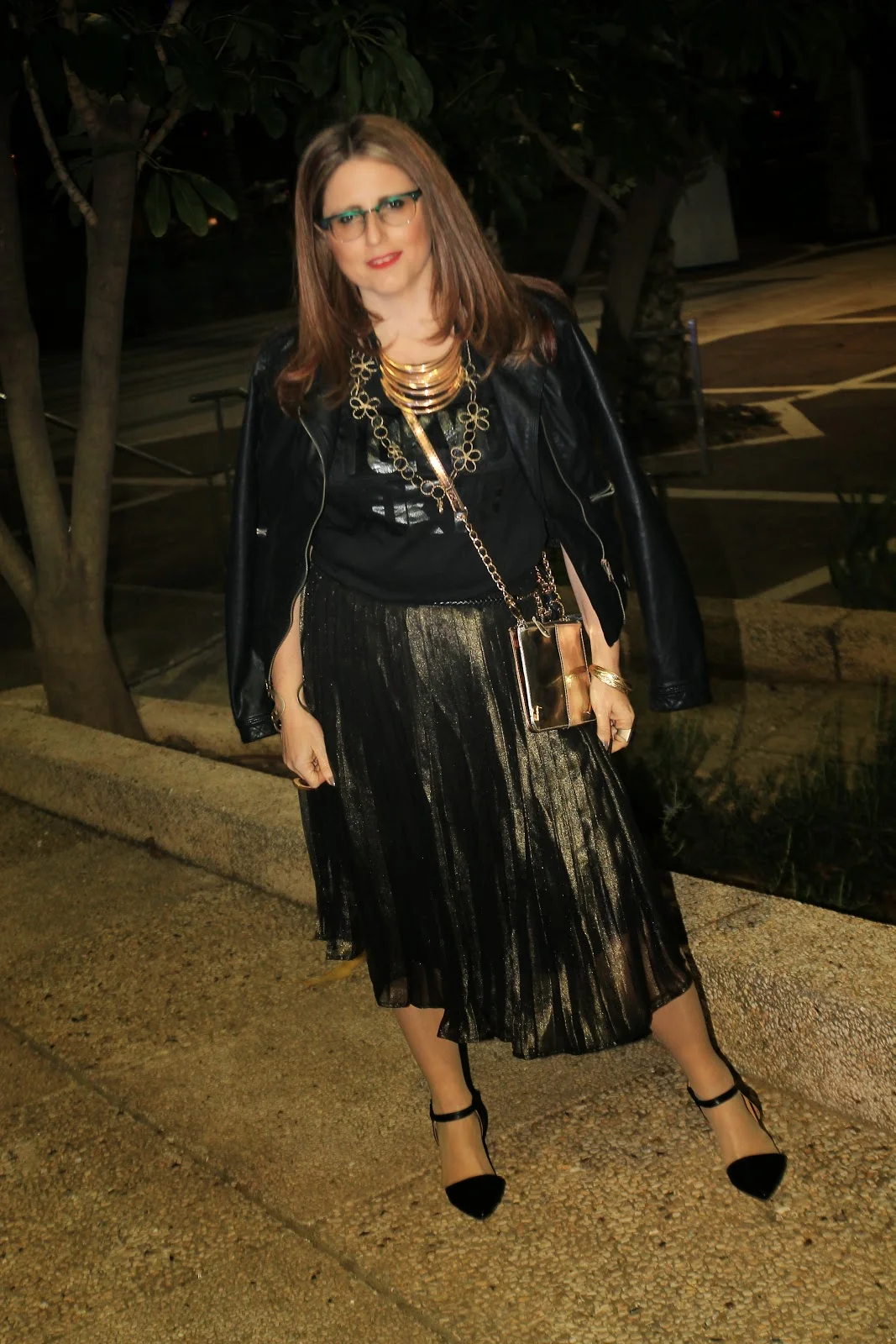 וכמו שאני בחרתי חצאית(שהבד שלה מנצנץ בזהב)בשילוב עם טישרט והמון אקססוריז בזהב!