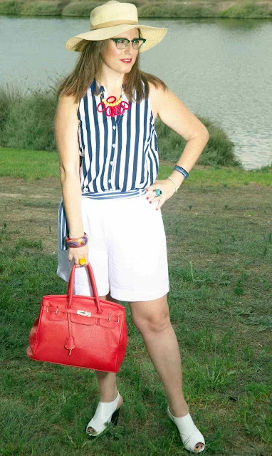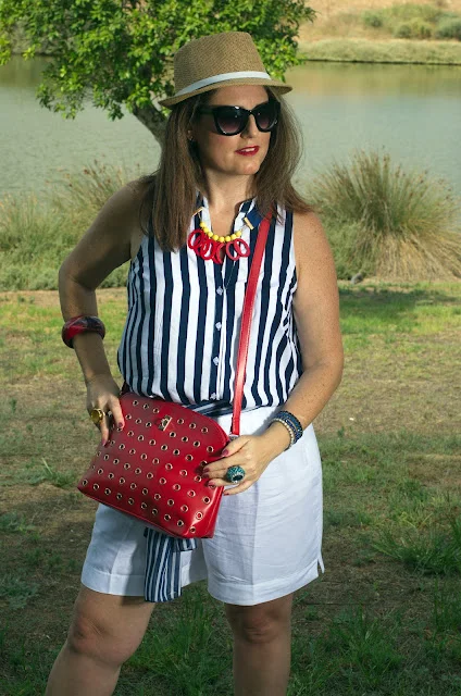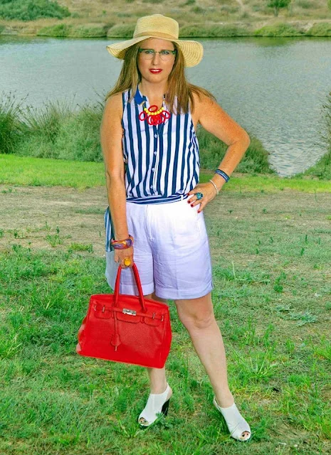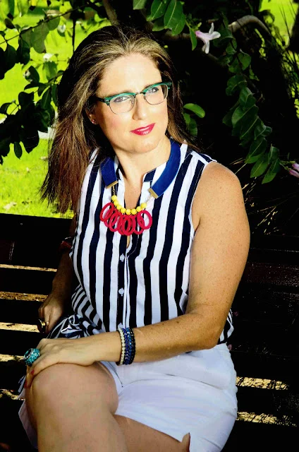 האמת לספר לכם התחלתי את הלוק הזה מהשרשרת של המעצבת המוכשרת שאני מאוד מתחברת לעיצובים שלה רחלי לה פלקה לוקה, השרשרת היא סופר צבעונית , אז חיפשתי בגדים שיהיו בצבעים שקטים אבל עם טוויסט מעניין ,חולצה עם הדפס פסים משתלבת תמיד מצוין עם צבעים ולכן זו היתה בחירה מושלמת בעיני ואליה המכנסון שסוף סוף הצלחתי למצוא אחד שיהיה בגזרה מצוינת גם עבורי, באורך הנכון ומבד נופל ונשפך .