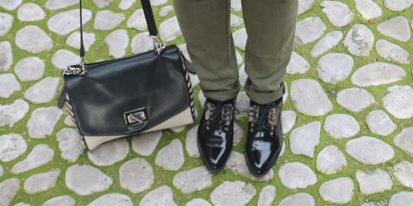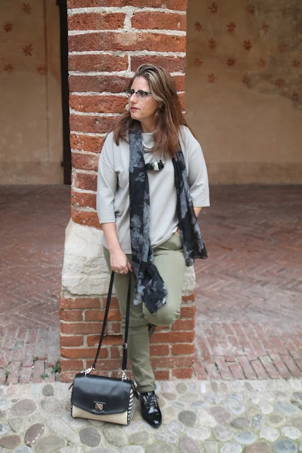 האאוטפיט היומי , ירוק זית והפעם בשילוב עם בז' ושחור והשרשת המקסימה של בוטגה בש .