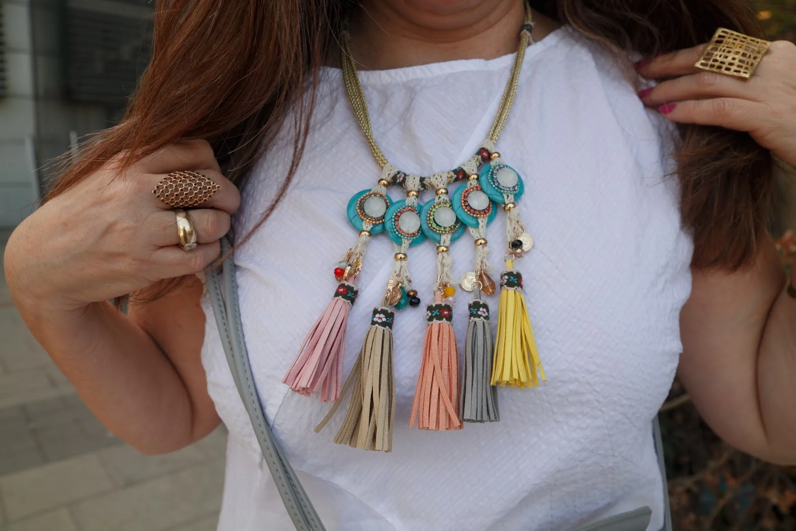 שימי לב לאקססוריז איזה שרשרת ותיק הורסים.