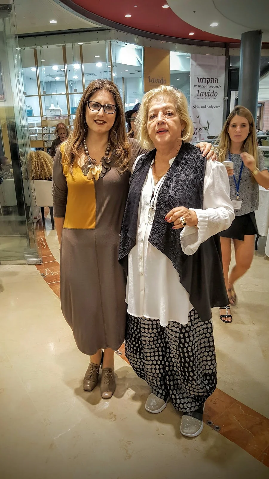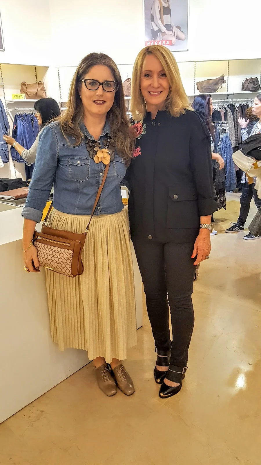 ולסיום תמונה שלי עם המעצבת המקסימה הנוספת של הרשת מגי בן דוד ואני עם האאוטפיט שהגעתי להשקה ,חצאית פליסה – מנגו,חולצת ג'ינס – קסטרו, שרשת – מיה אנספרשיין , תיק- ניין וסט ונעליים – דנית ירון.