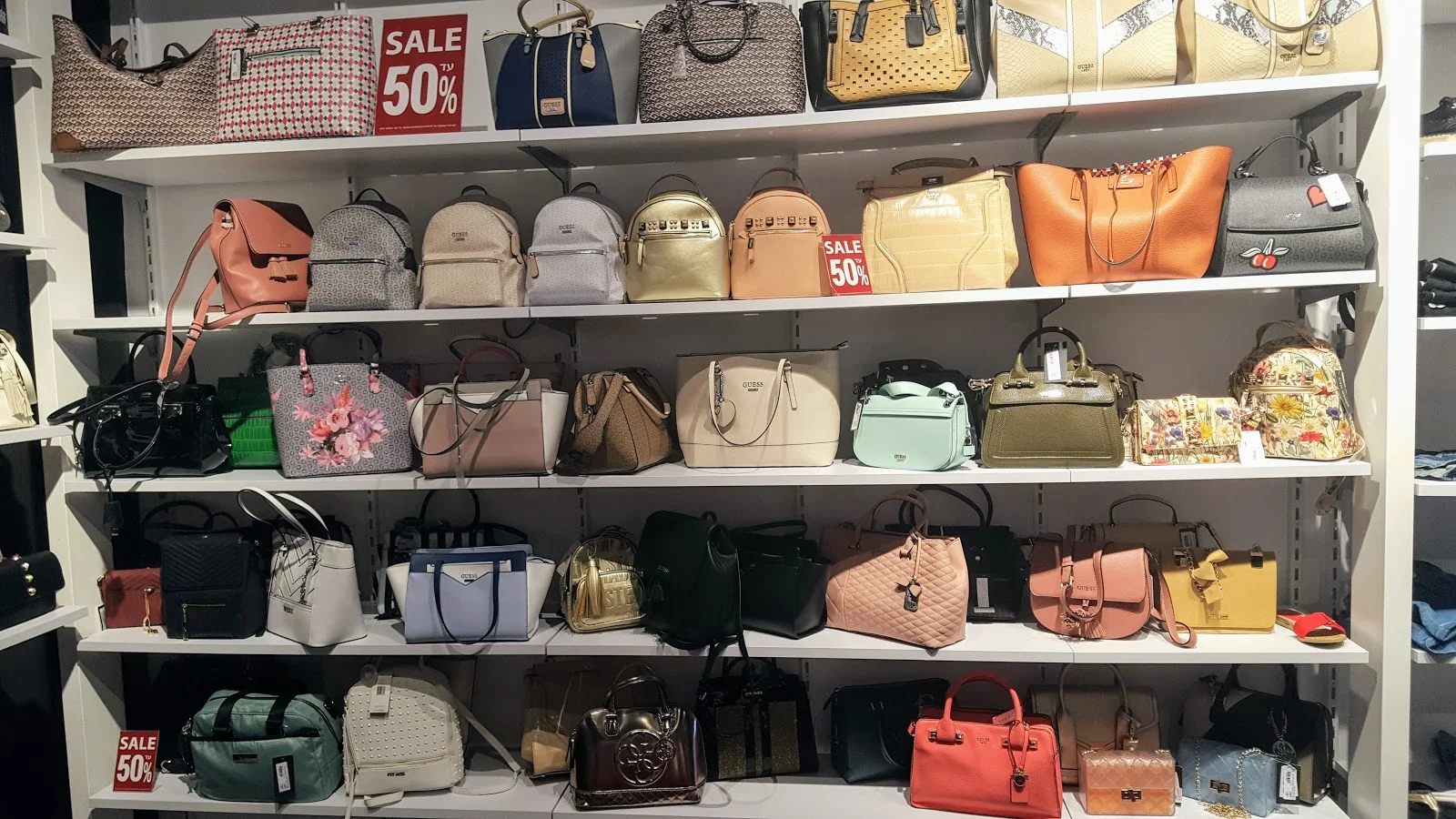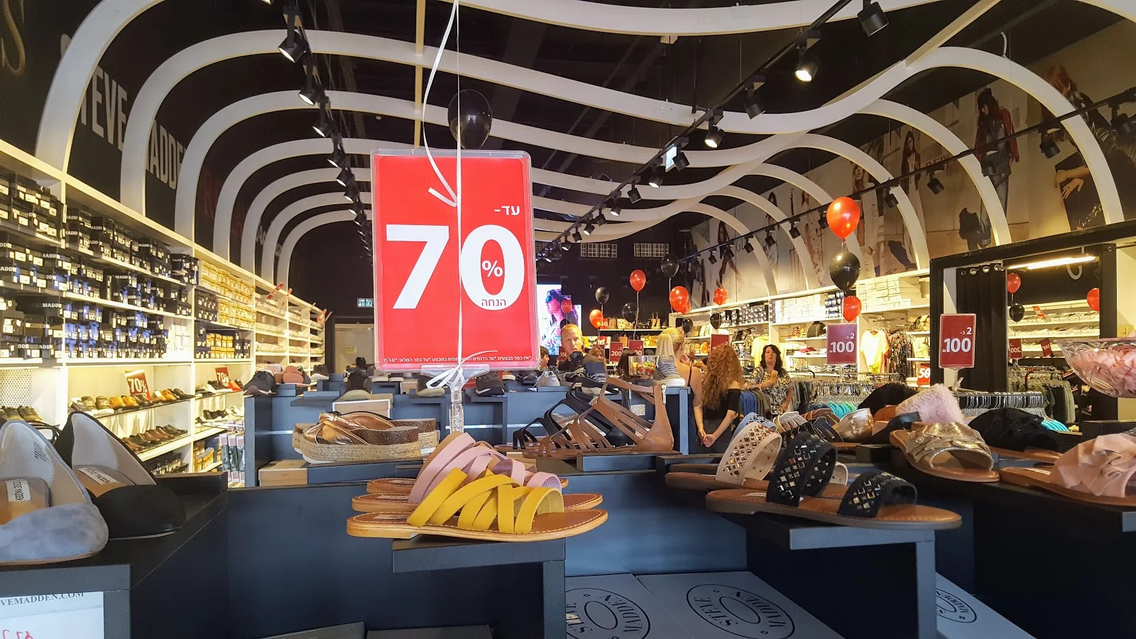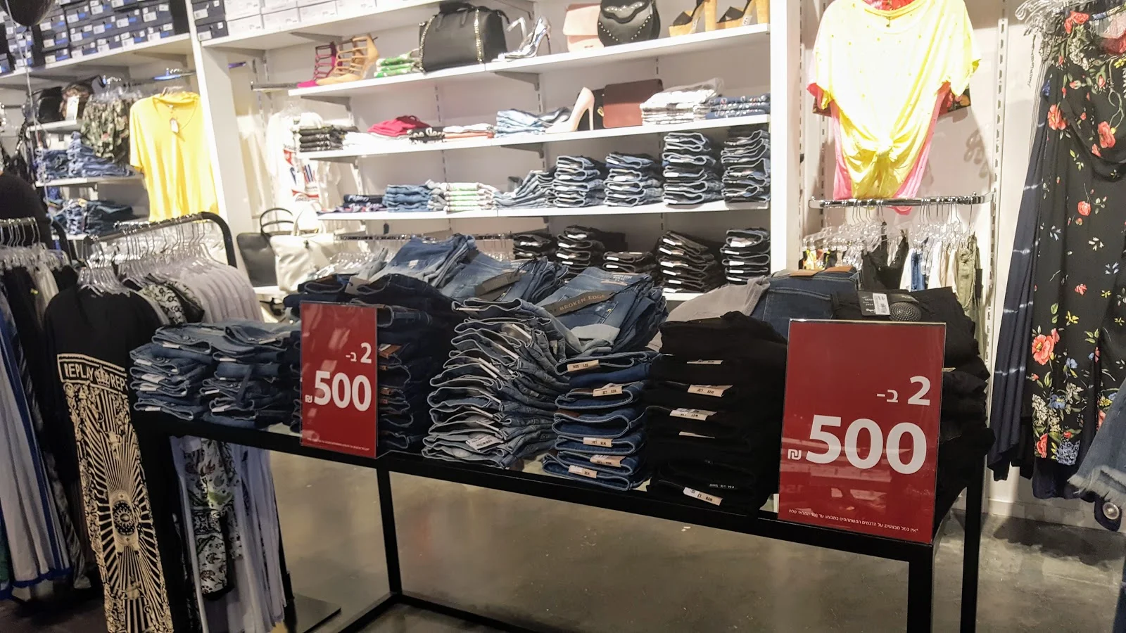 ממש חגיגה של מותגי יוקרה שכולנו אוהבים ואותם תכלו למצוא במחירים מפתיעים ובמבצעים שווים במיוחד,כמו שני זוגות נעלי נשים של STEVE MADDEN ב-250 ₪, או 2 זוגות ג'ינסים של PEPE JEANS ב-500 ₪, תיקי GUESS עד 50% הנחה, 2 חולצות טי של ריפליי ופפה ג'ינס ב-200 ₪ ועוד.