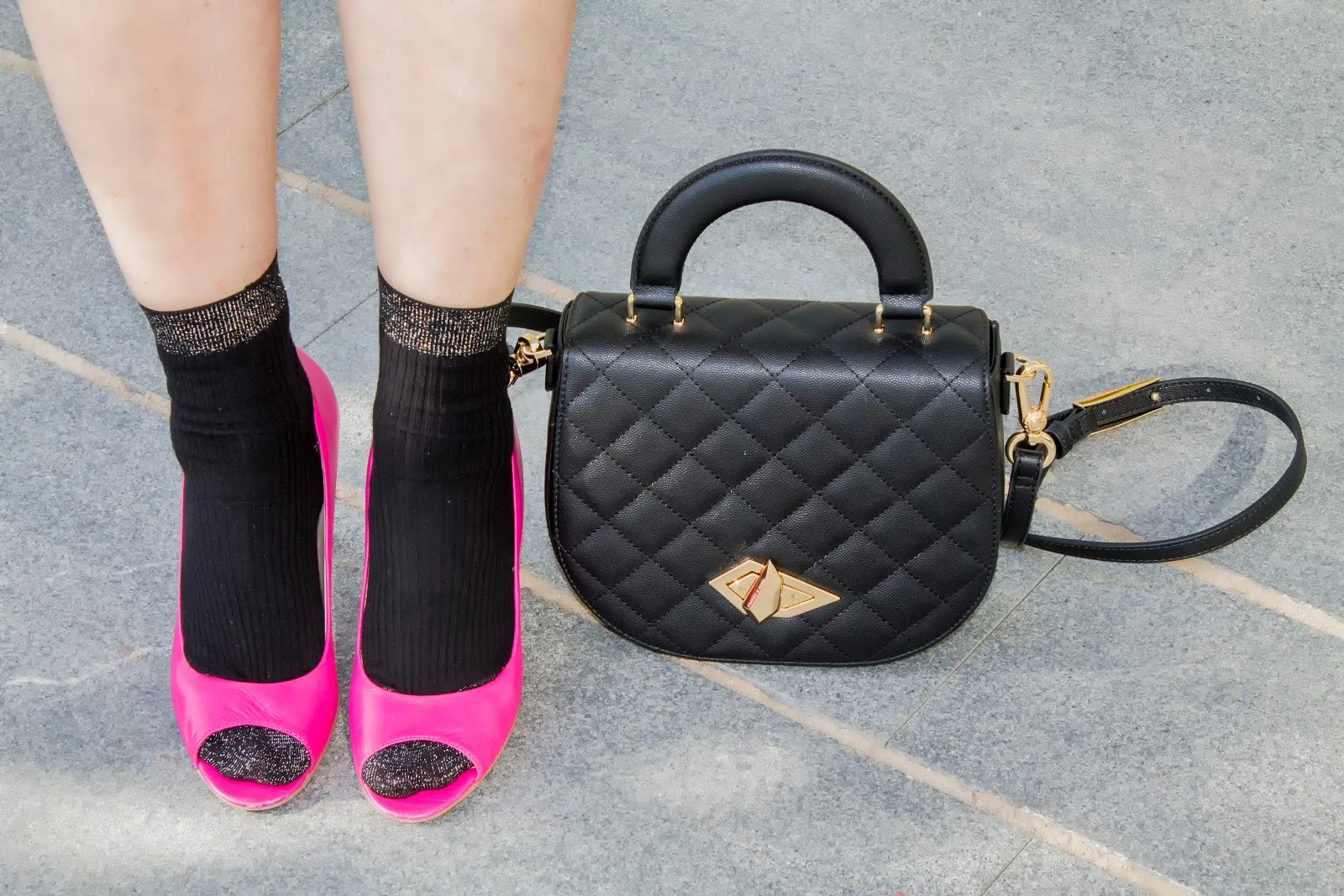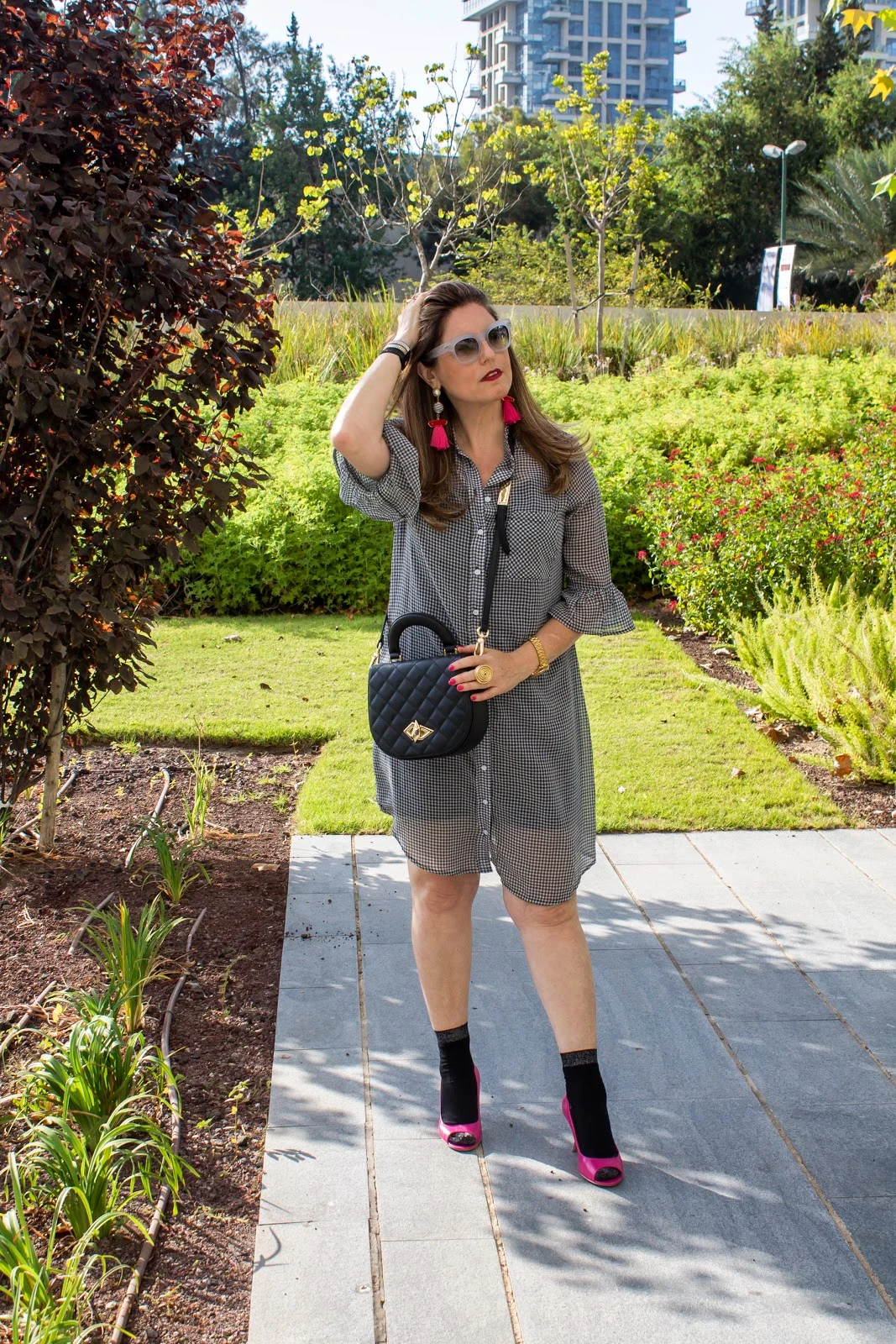 לאחד הלוקים שילבתי גם חגורה ותמיד נגיעה של צבע וגרביים.