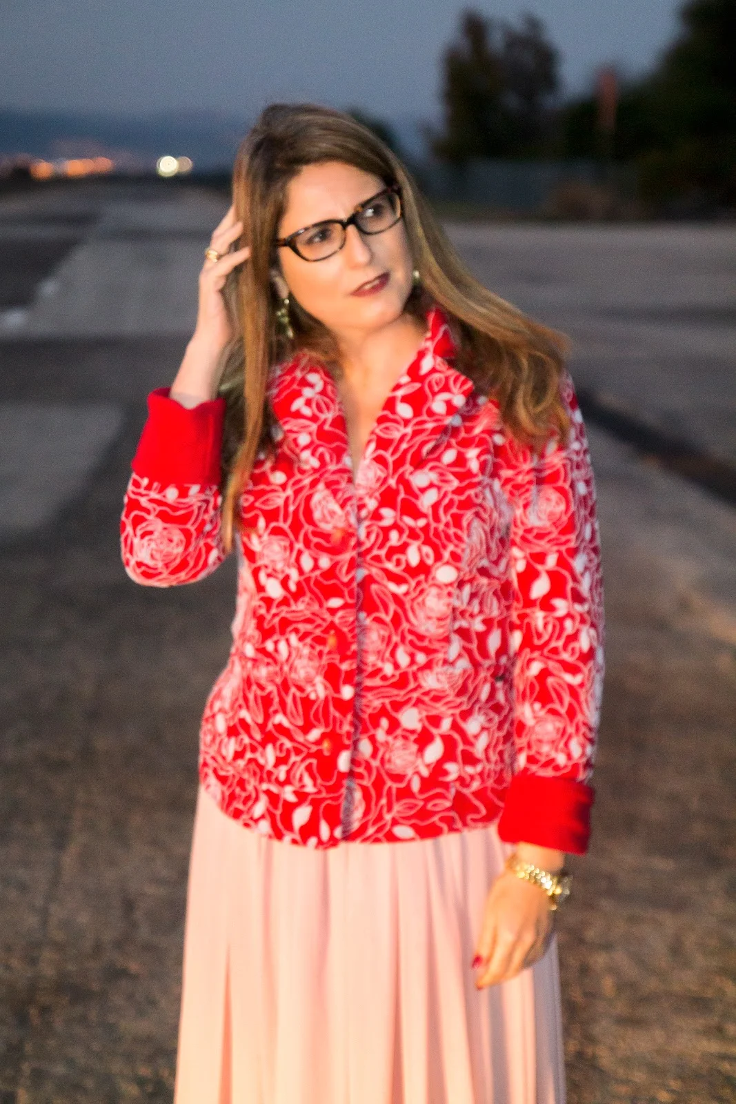 היום תראו את הבחירה שלי ,הז'קט המושלם באדום קטיפתי בשילוב עם אפור מאוד בהיר עם ציורי עלים -רעומה קראה לו ז'קט שיש.