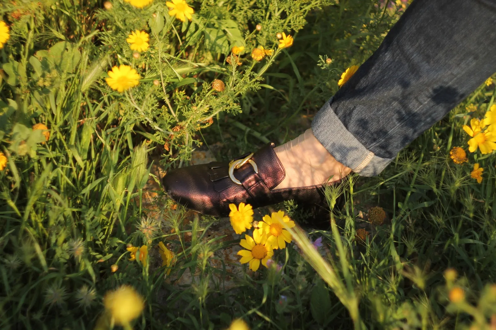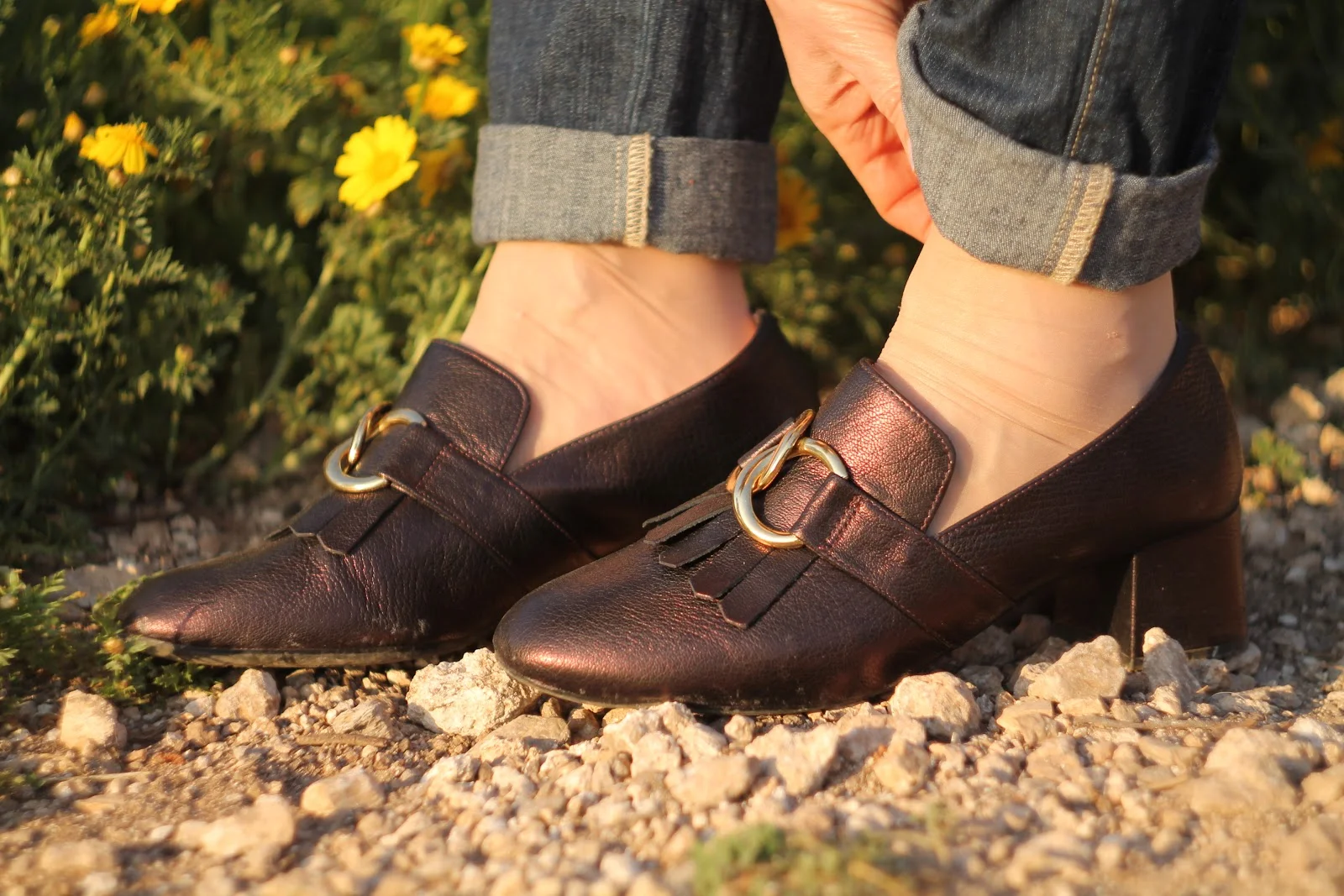 הנעליים – מוקסינים בצבע מאוד מיוחד ברונזה . הנעליים נרכשו בחנות חיפאית , בין החנויות המשובחות ביותר בחיפה לנעליים- mireille .