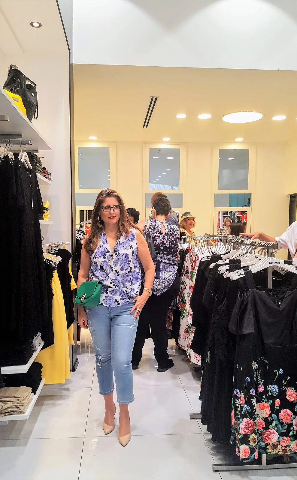 | עם הג'ינס וחולצת מעטפת והתיק הירוק גולברי |
