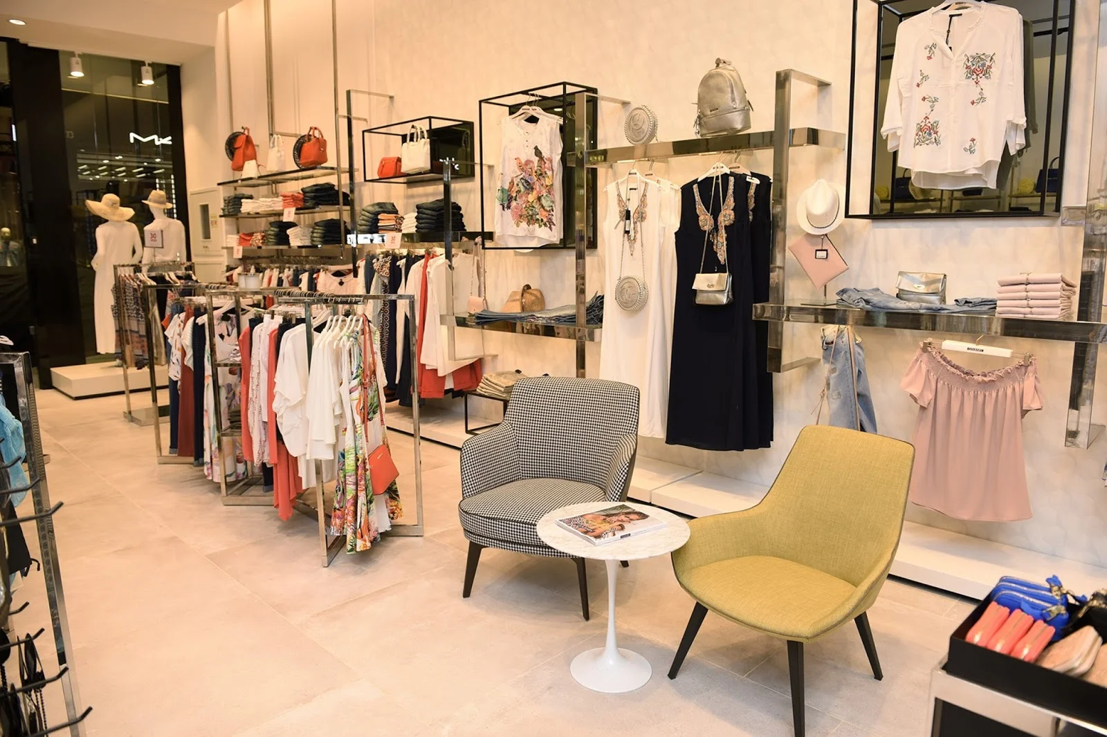 החנות גדולה ומרווחת ,בגווני שחור לבן קלאסיים ונקיים שנותן אפשרות לראות את הבגדים בקלות ,הכל נגיש ונעים למראה.