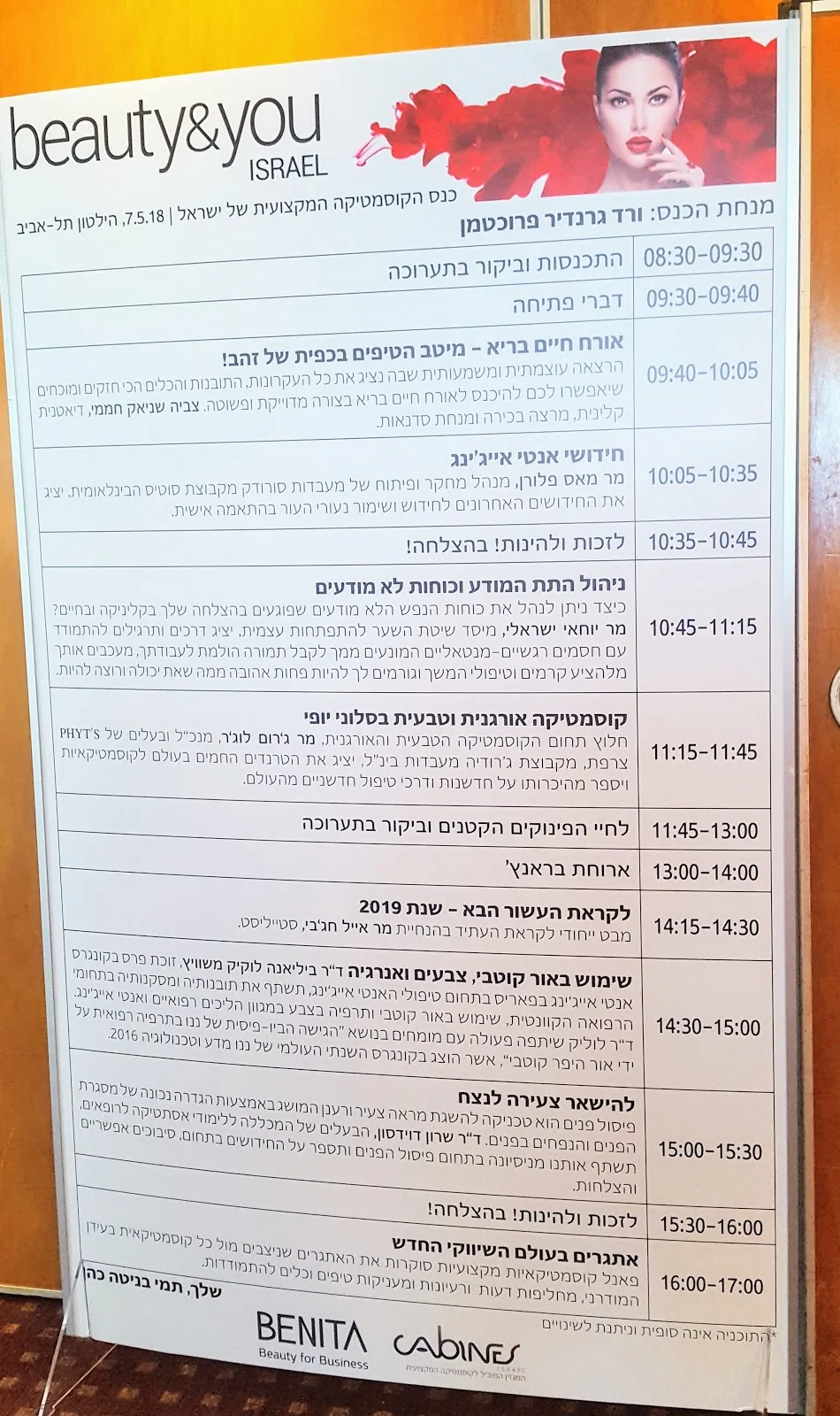 אני נכחתי בהכנס שהתקיים בחסות הגוף לקידום הקוסמטיקאיות במלון הילטון היוקרתי בתל אביב והשתתפו בו מיטב החברות המובילות בארץ בתחומי הקוסמטיקה, טיפוח, איפור, ציפורניים, הסרות שיער ועוד.