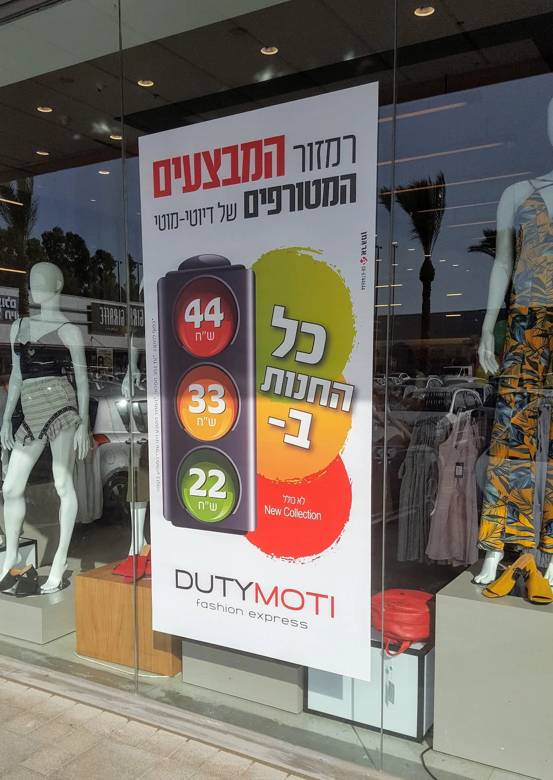 רשת האופנה דיוטי מוטי יצאה במבצע רמזור, ומה הכוונה ? מבחר גדול של פריטים במחירים