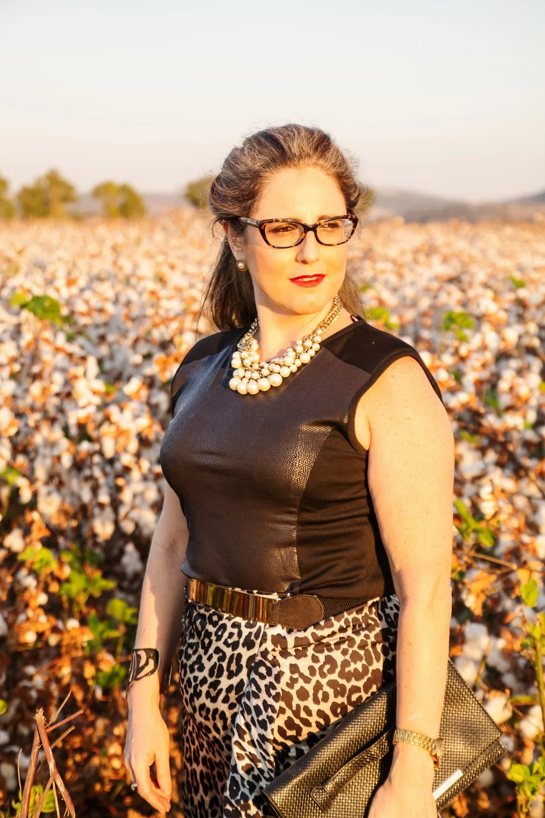 אלגנטי רומנטי -השארתי את המנומר לבדו ושלבתי אותו עם שחור (לא הוספתי צבע נוסף )ואבזרתי בפנינים שתמיד הופכות כל לוק ליותר רומנטי ורך וכך הפכתי את המנומר הנועז לרגוע, אפילו "שקט".