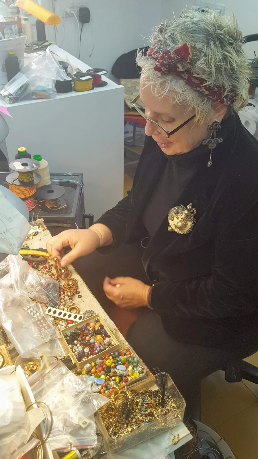 אני מאוד שמחה שהיתה לי ההזדמנות להכיר את דורי באופן אישי. היא אישה מקסימה וחייכנית , עם המון אנרגיות טובות , היא הסבירה איך היא מייצרת את התכשיטים . שביקרתי בסטודיו שלה, ראיתי את שולחן העבודה שלה וכיצד מגיע התכשיט לעולם .שולחן העבודה שלה עמוס במספר רב של פריטים שונים שמהם היא מרכיבה את התכשיט, כמו, חוטים, חרוזים, כפתורים,בדים ,אבני חן והכל ביחד הופך ליצירת אומנית.