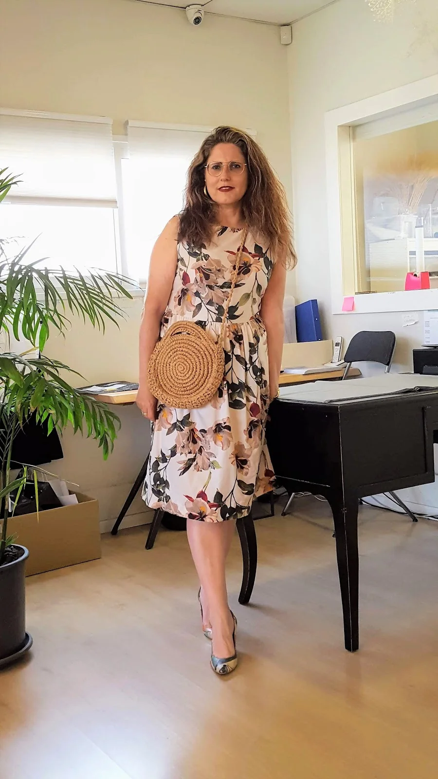שמלה פרחוני, כפרית וקלאסית , אורך מדיוק מאוד אהבתי .