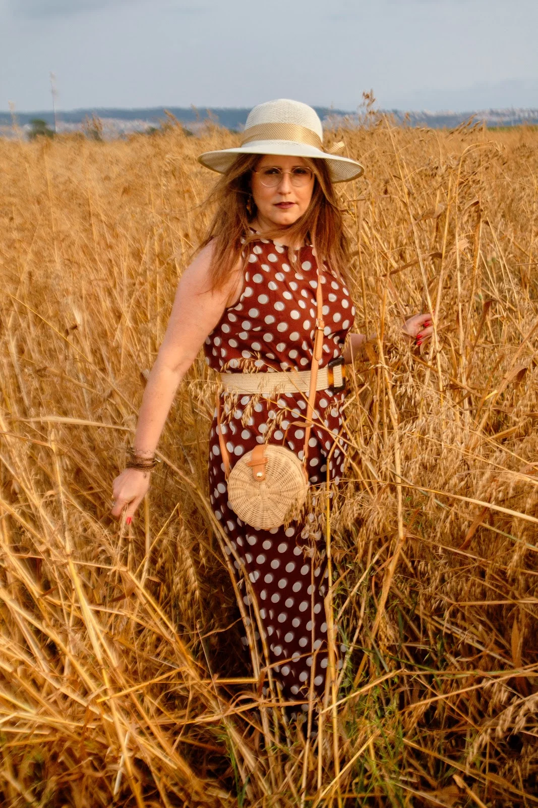 הוספתי חגורה , תיק וכובע הכל בצבעים טבעיים והתקבל לוק מושלם לשדות החיטה וגם לטיול לבית קפה עם חברות .