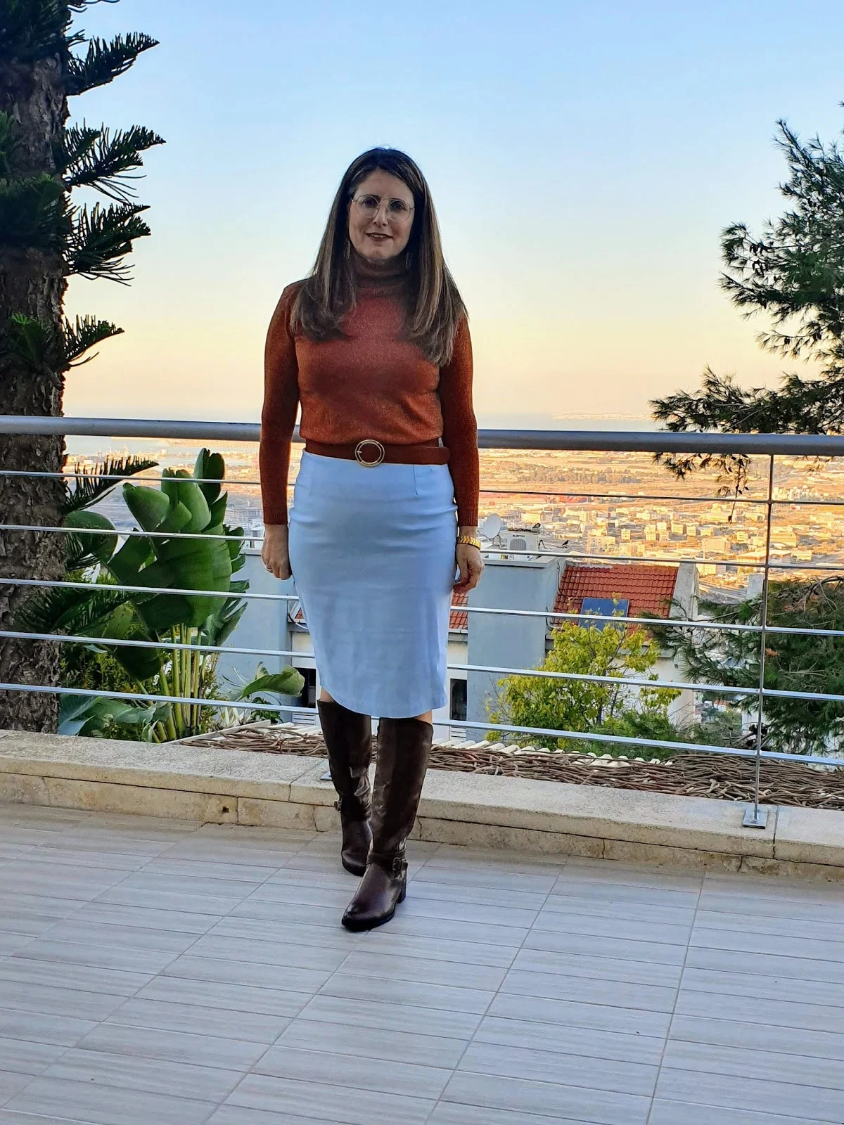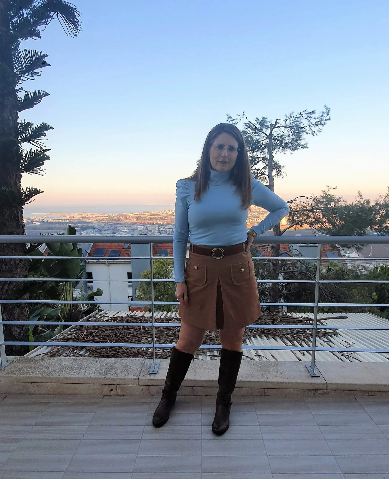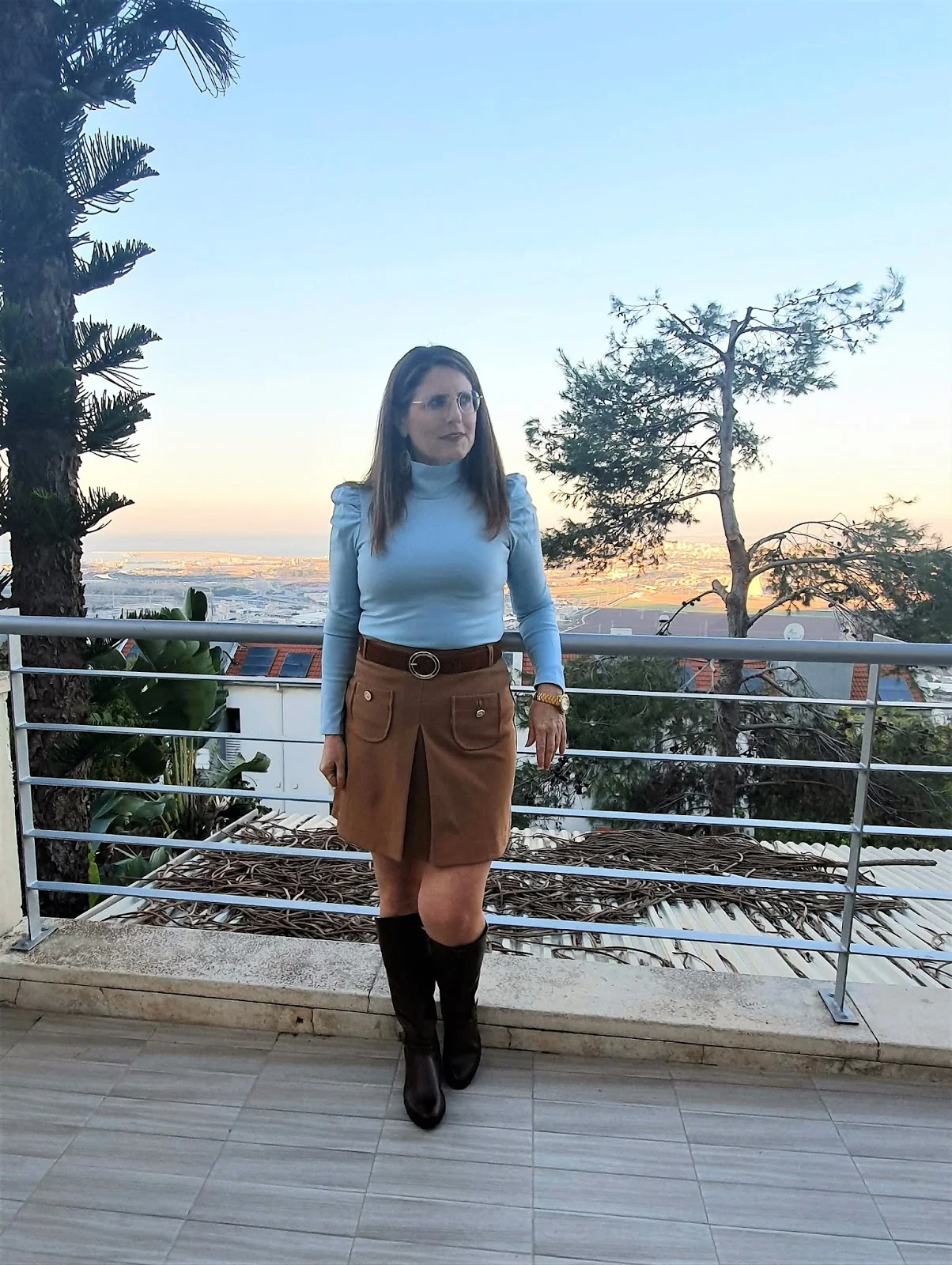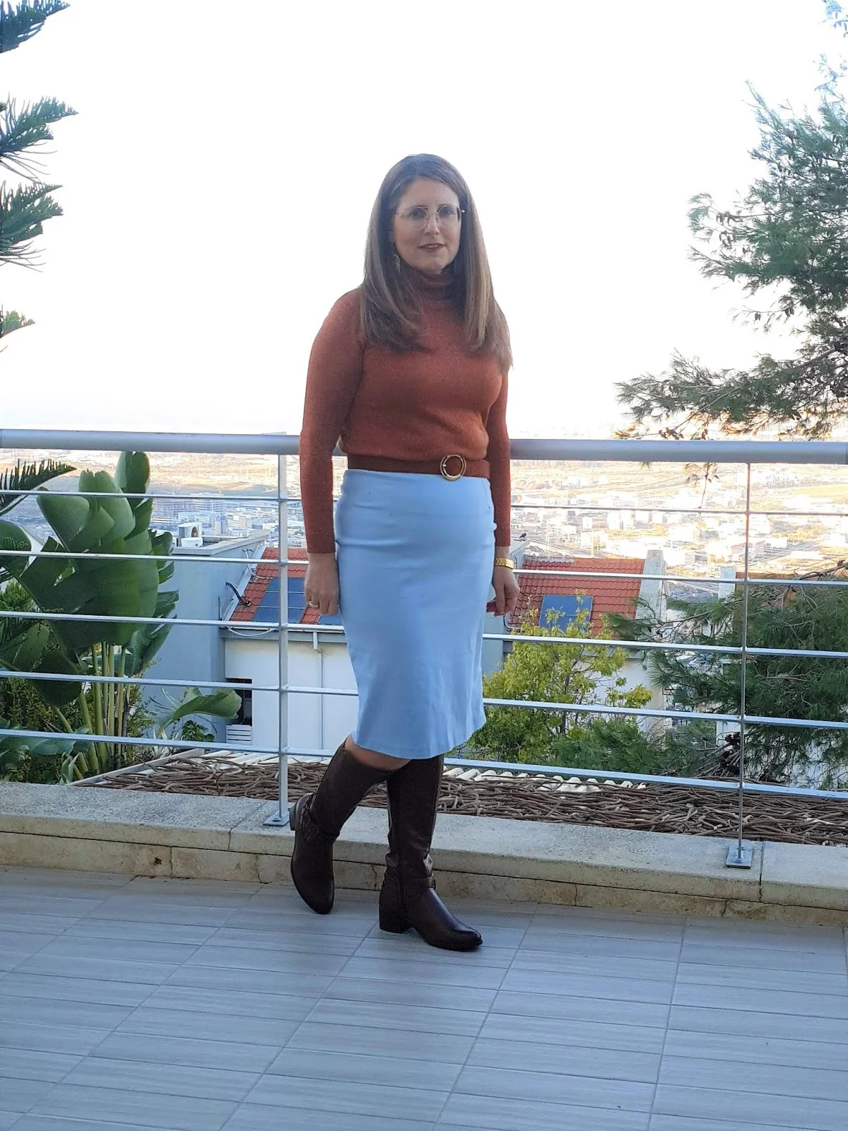 נעלתי את המגפיים עם שלושה לוקים שונים כפי שהסברתי ,ושלבתי חום ותכלת שאני מאוד אוהבת, התכלת הוא צבע שנותן המון אור .