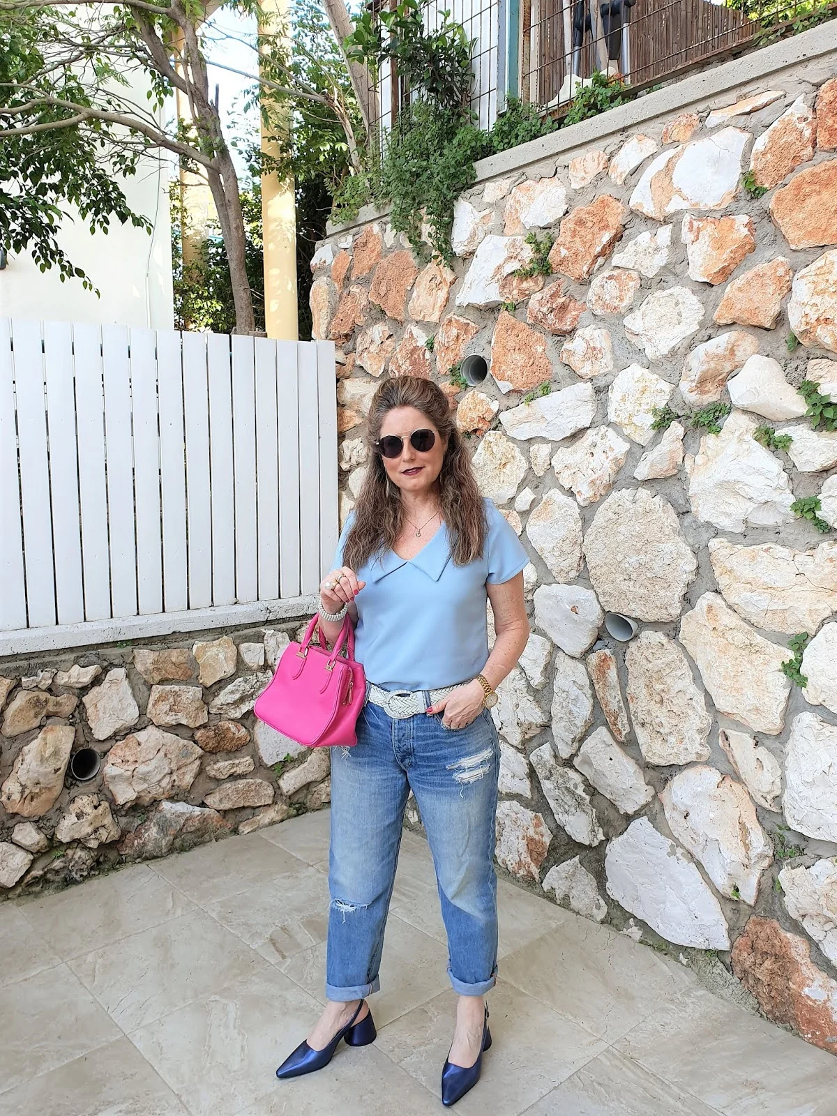 לסיום לוק קזואל בג'ינס בוי פרנד ,והפסטל לוקח אותו למקום מאוד עדין ,רומנטי .