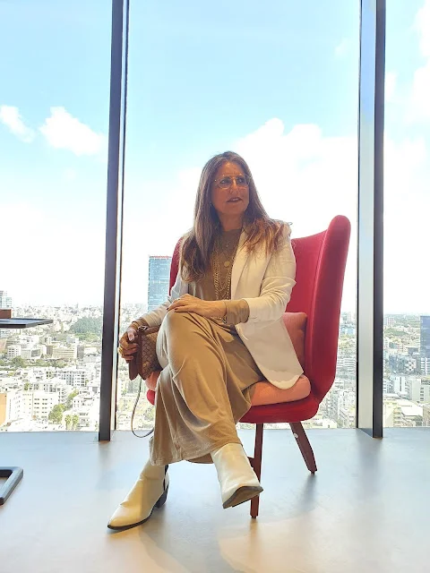 הקליניקה בתל אהיה ממוקמת בקומה ה-20 והנוף הנשקף מהחלונות הגדולים הוא נוף נהדר, לריסה בתחילת דבריה סיפרה ואמרה שהיה לה מאוד חשוב לעצב את הקליניקה בצורה נעימה ורגועה שהמקום יהיה נוח ,מרגיע ללקוחה שמגיעה ושתהיה לה הרגשה של בטחון ונינוחות, אני יכולה להעיד שהיא הצליחה לעשות זאת בגדול.