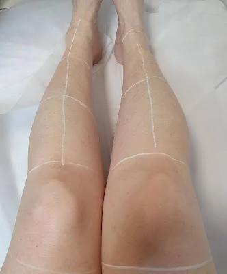 קיבלתי משקפי מגן נגד קרינה ,היא חיטאה וניקתה את כל הכלים במקום ואז סירטטה בעזרת טוש מיוחד על הרגליים קווים וחילקה אותם לאיזורים קטנים כך שלא תפספס אף נקודה ותעבוד בצורה מסודרת.
