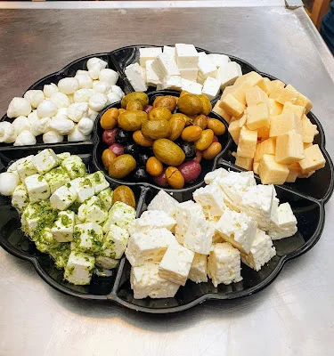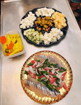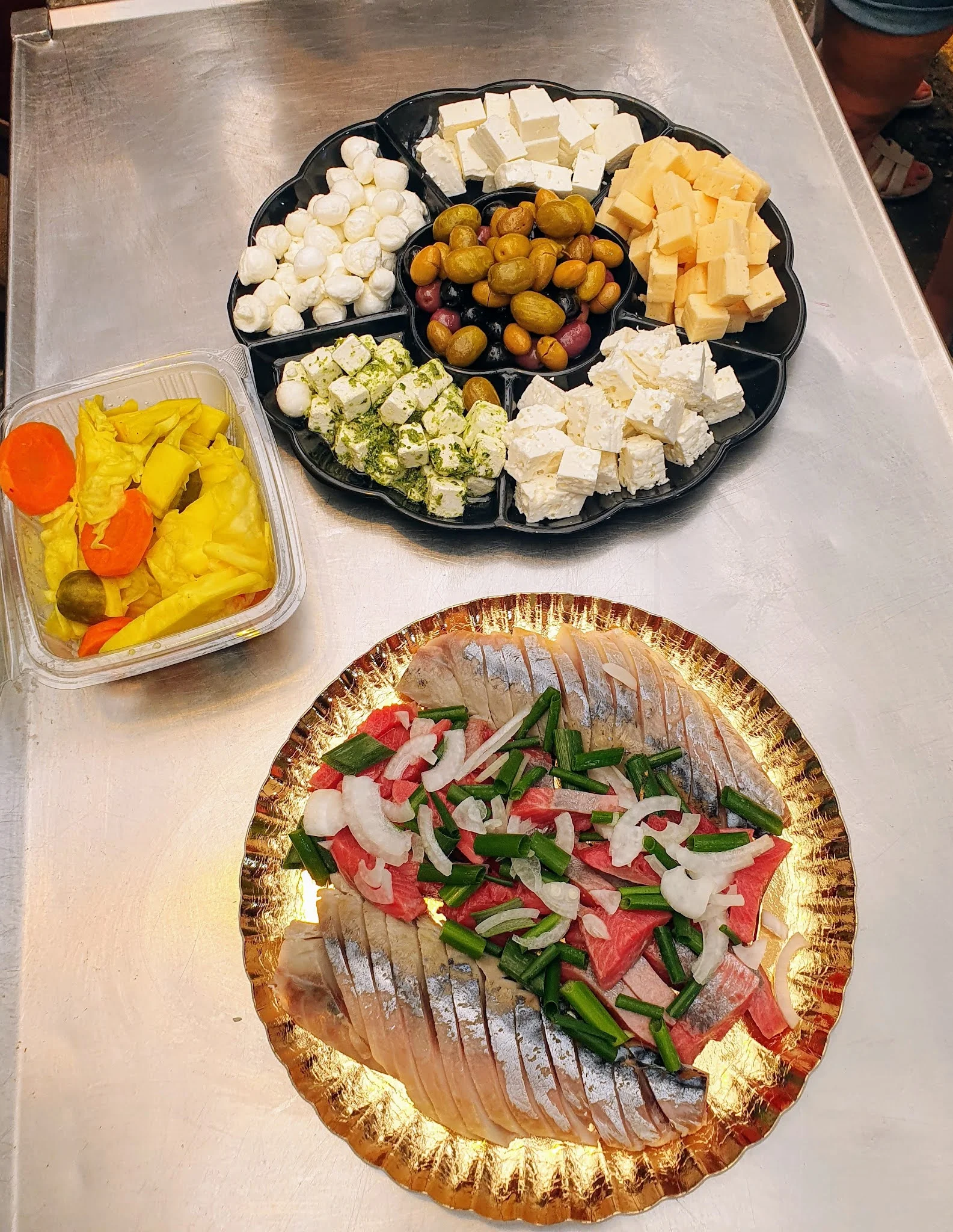 נהננו מצלחת של דגים ,צלחת גבינות טעימות וחמוצים.