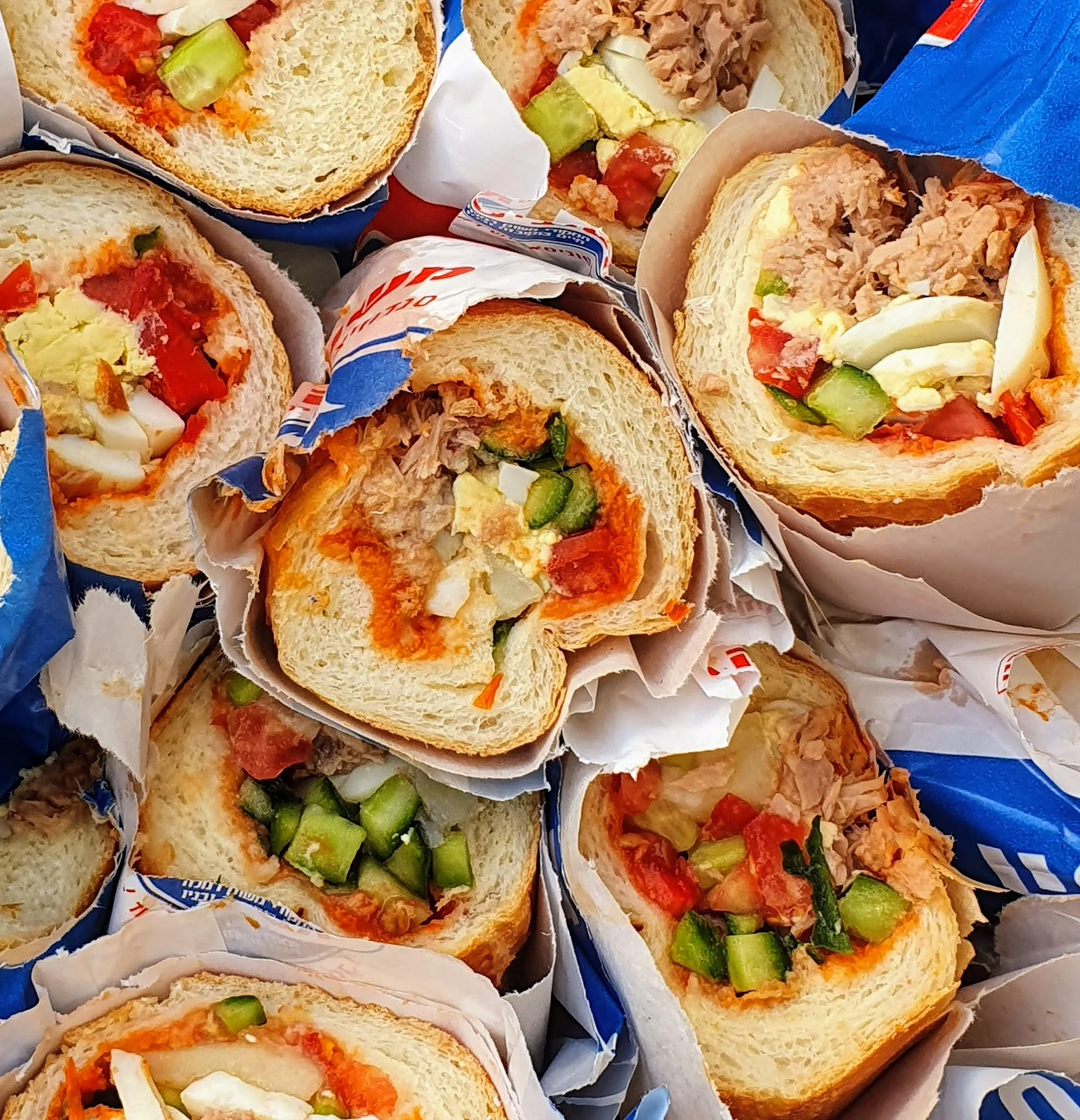 התחלנו עם הסנדוויץ הטוניסאי המפורסם של חיים בוקובזה תענוג של ביס ,