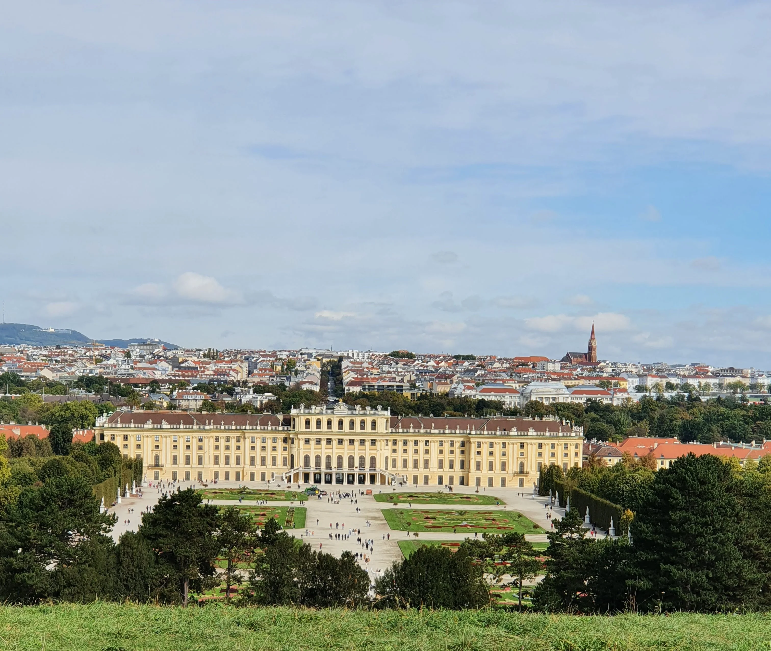 את היום הראשון החלטנו להעביר באטרקציה הכי פופלרית העיר- ארמון וגני שנברון -נסיעה ברכבת התחתית מספר תחנות ומגיעים ישירות לארמון. הגנים יפיפיים ומטופחים, נכנסנו גם לסיור המקוצר ,ל-22 חדרים מפוארים מהארמון.-עלות 22 יורו והגנים בחינם.