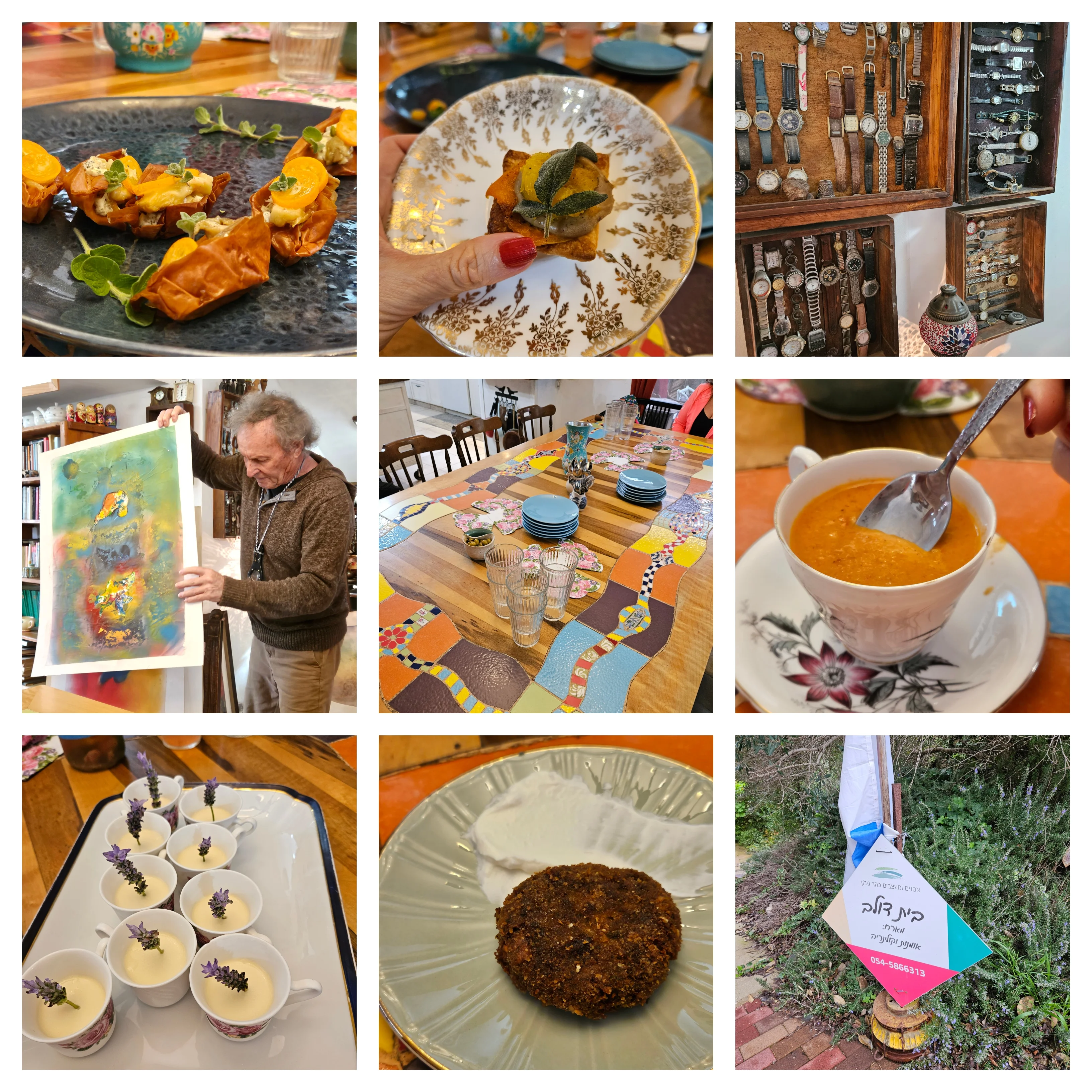 אנחנו נהנינו מטעימות מיוחדות שהיו תענוג לחייך, התחלנו עם סירות עלי פילו ממולאות בלאבנה עיזים ,חציל קלוי זאתר ותפוז סיני, טעמנו לביבת תרד עם שקדים ,סלסלת בצק עלים עם דלורית מוקרמת, עיגול דלעת ערמונים ,ממרח ערמונים ומרווה .