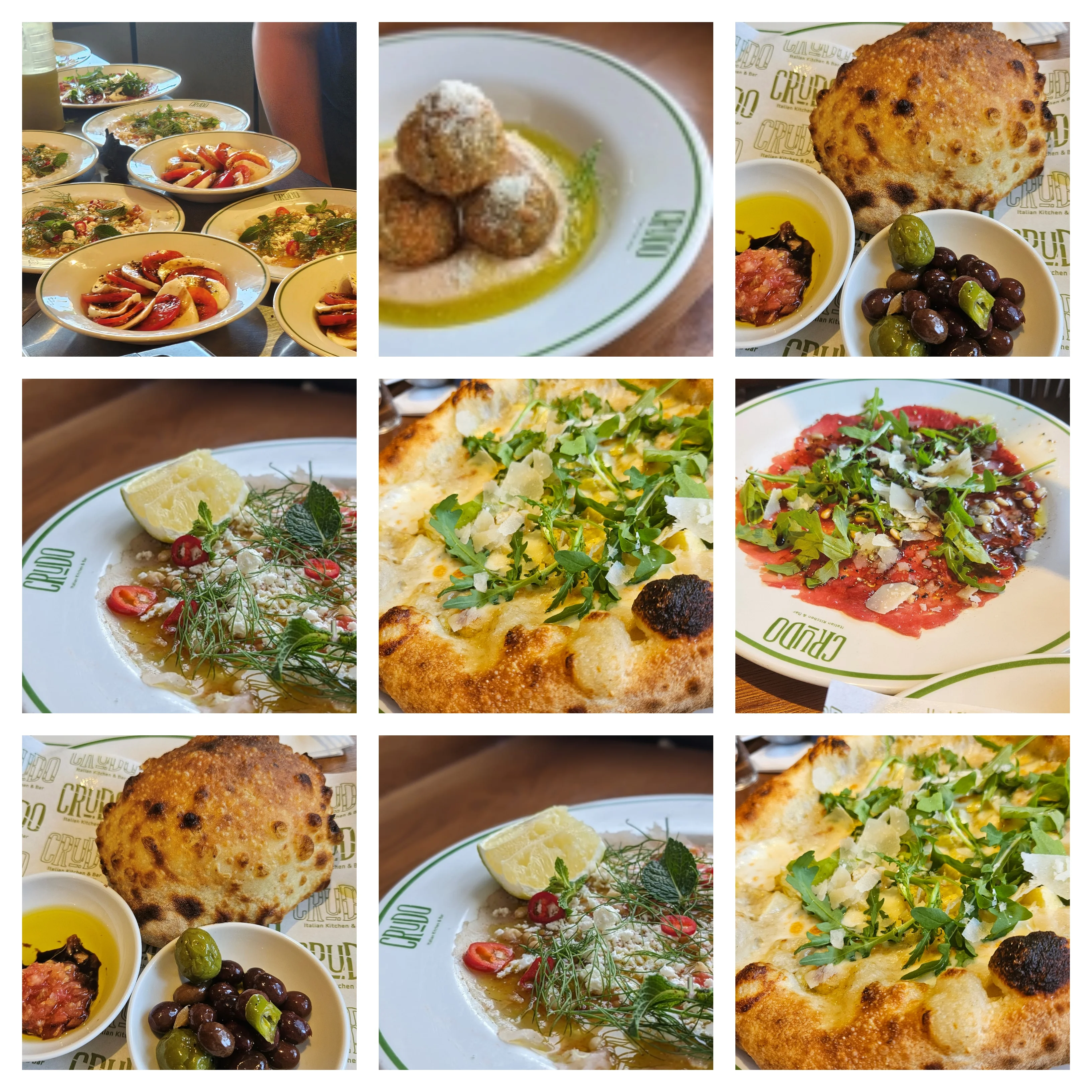פוקאצ'ה עם מיטבלים, ארנצ'יני מפריקי ,סלט קפרזה ,קרודו דג ים ופיצה ארטישוק ועוד , קינוחים טעימים פנקוטה יוגורט כבשים וגלטו וניל.