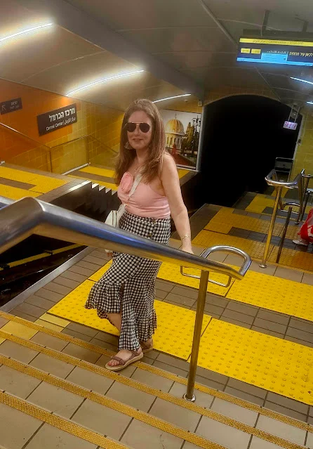 כולנו עם סנדלי השורש הצבעוניות בדרכינו לתחנת הנביאים שבהדר ,הולכים לכיוון שוק תלפיות , סיקרין 21.
