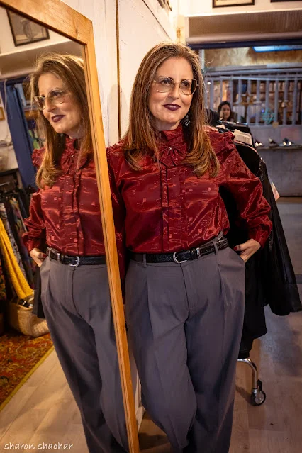 הגענו למקום שהוא חגיגה עבורי, בוטיק בגדי וינטאג' הכרנו את בר בעלת הבוטיק, שהחליטה להגשים את חלומה ולפתוח בוטיק וינטאג' שלשם היא מלקטת פריטים מיוחדים מכל אירופה .כפי שהיא אומרת "כל פריט נבחר בקפידה ועובר טיפול מסור עד שהוא מגיע למשכנו החדש, אליכן" מדדנו פריטים יפים, ניהנינו מפריטים שאנחנו לא רגילות, קיבלנו מטל משימות שאני לא אספר…