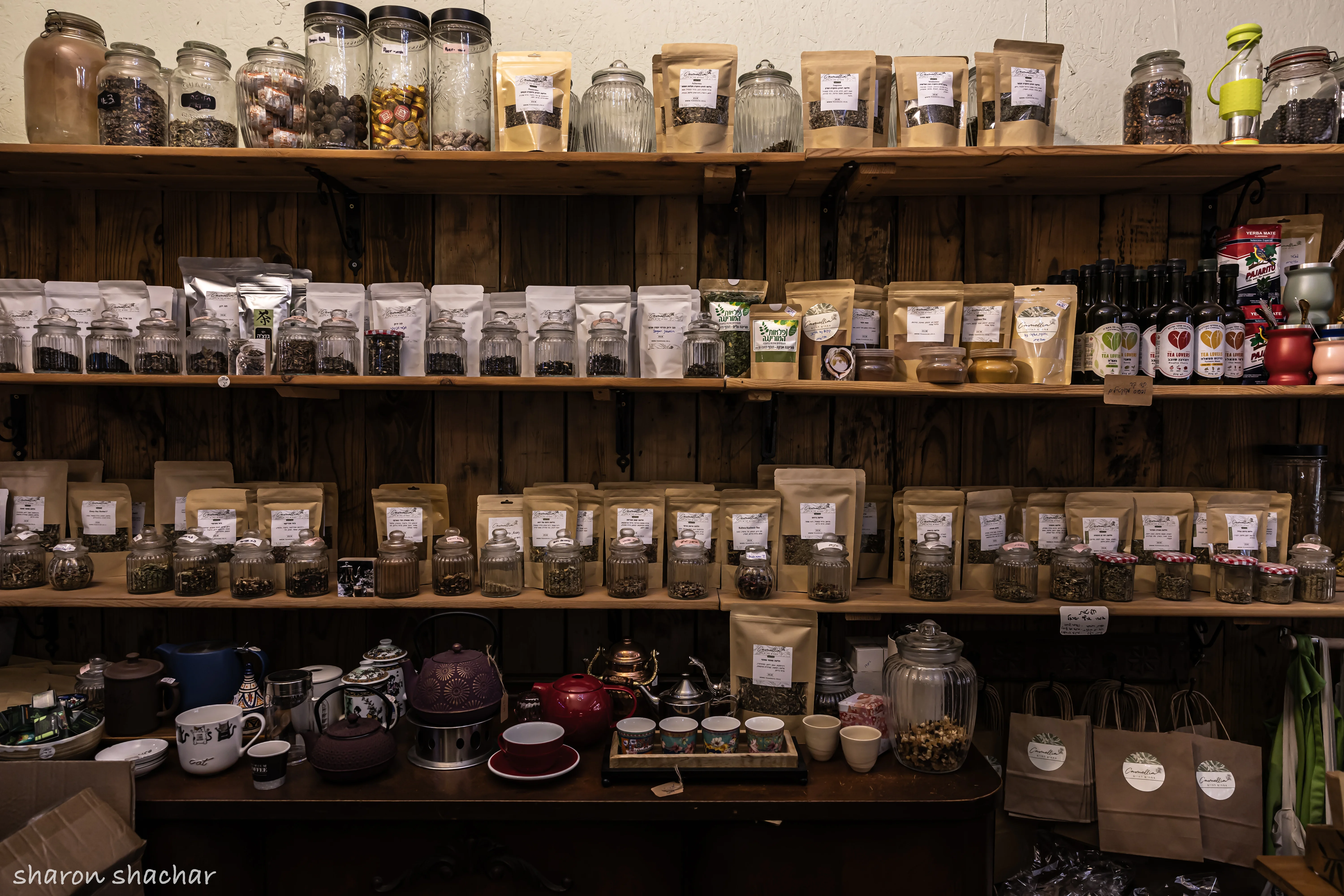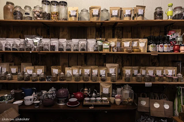 | בחנות של דורית תמצאו מגוון עצום של סוגי תה שונים. צילום :שלי דואק |